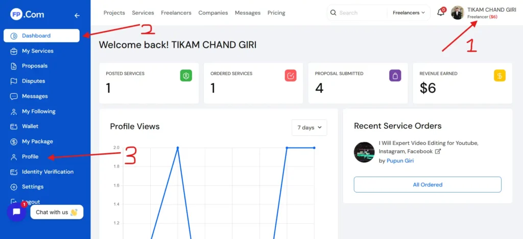 Now login to the dashboard of your freelancer account and click on the profile section.